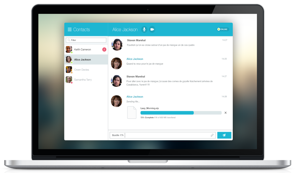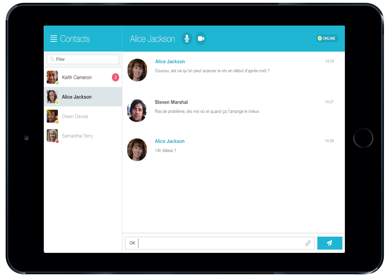 Utilisable depuis smartphone, tablette et ordinateur. Vos conversations vous suivent sur n'importe quel écran.